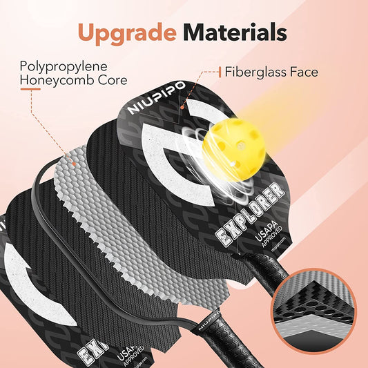 Explorer Pickleball Paddle - Fiberglass, USA Approved Professional Pickleball Paddles, Polypropylene Honeycomb Core, Ultra Cushion, 4.96″ Grip Size, Mid-Weight with Cover, for Advanced Players